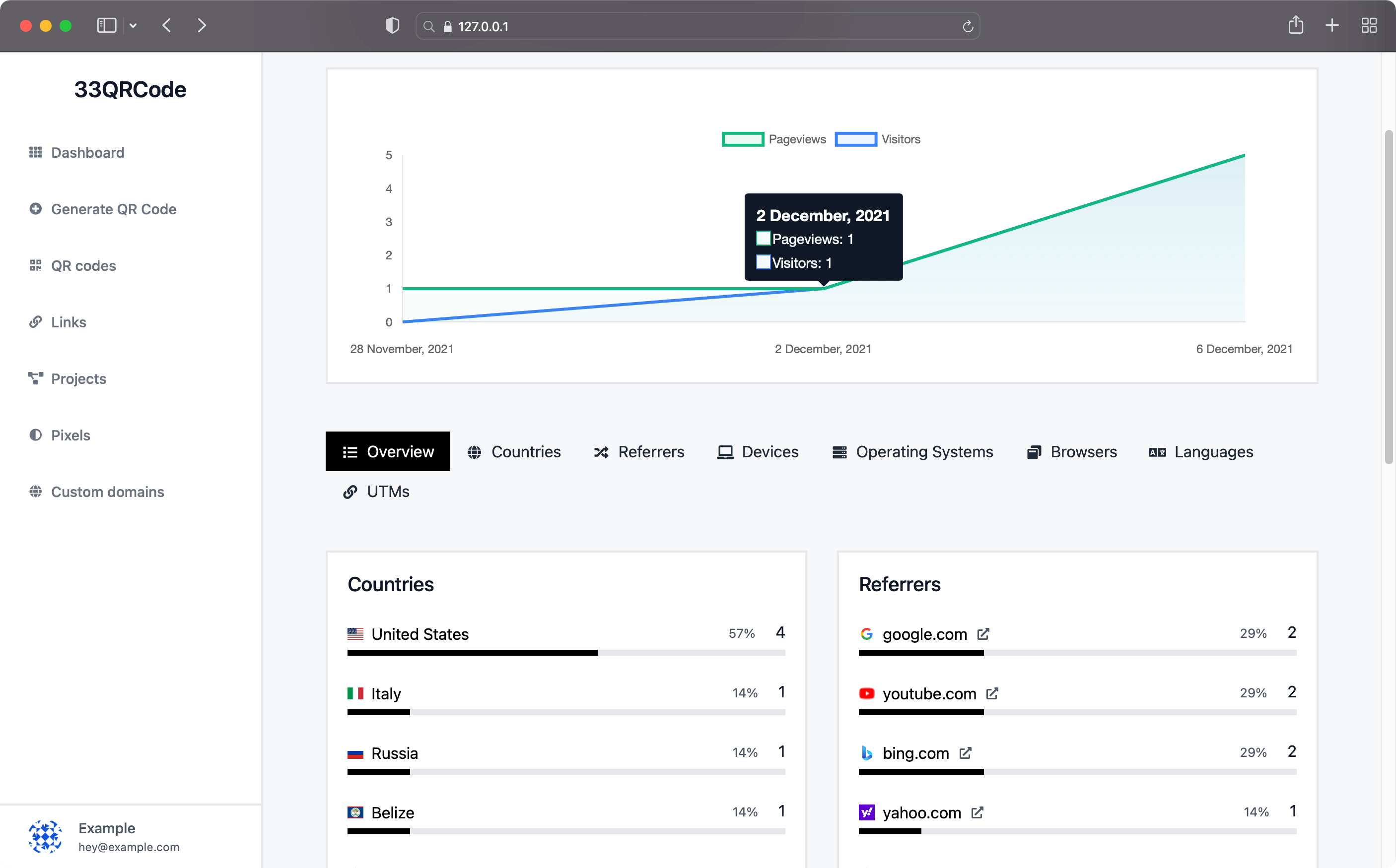 Static QR codes are fixed, meaning that all the data is directly embedded into the QR code. Once generated and printed for real-world usage, it can't be changed.
